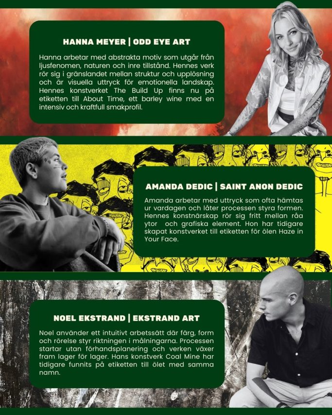 Den 31 januari lanseras ölet och samtidigt håller Hanna Meyer, Noel Ekstrand och Amanda Dedic – trion bakom Art Pop-Up – en samlingsutställning på plats. Noel och Amanda har tidigare haft sina verk på burkar från Hyllie Bryggeri, och under kvällen kommer alla tre konstverk även att finnas som signerade posters i begränsad upplaga till försäljning.