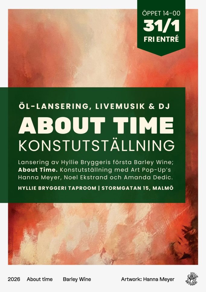 ABOUT TIME | Vernissage, livemusik, DJ och öllansering på Hyllie Bryggeri.